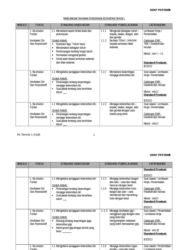 Kssr tahun 1 rancangan tahunan pendidikan kesihatan tahun 1 minggu fokus standard kandungan standard pembelajaran catatan/emk 1 1. July 18, 2020 4 comments. Dengan itu, rpt ini dikongsikan bagi membantu pihak yang ingin. Pdpc (pengajaran dan pemudahcaraan) matematik tahun 1 (sb). Institusi raja payung negara dskp terkini (dskp :
