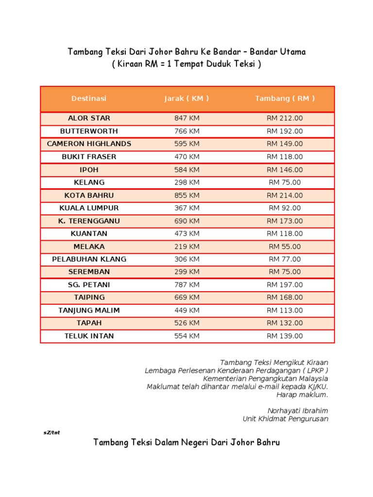 For more information and source, see on this link : Jadual harga tambang teksi lembah kelang projek travel. Mendapat tempahan dari lebih ramai penumpang yang memilih tambang tetap; Justgrab adalah servis permintaan segera dan tambang tetap. Kenaikkan tambang teksi bermula 19 march 2015. Tambang teksi bas ekspress naik ekoran kenaikan kos pelbagai sejak 2009 mediaterjah. Tambang teksi kl ke 8 termurah dunia ye ke mynewshub. Panduan tambang teksi jarak perjalanan pdf. For more information and source, see on this link : Had kadar tambang perkhidmatan teksi lapangan terbang_kereta sewa di lapangan terbang semenanjung malaysia pdf. For more information and source, see on this link : Kadar tambang bas teksi dan keretapi naik gst 2015. Perkhidmatan teksi adalah antara pengangkutan awam yang sudah lama beroperasi di negara kita.